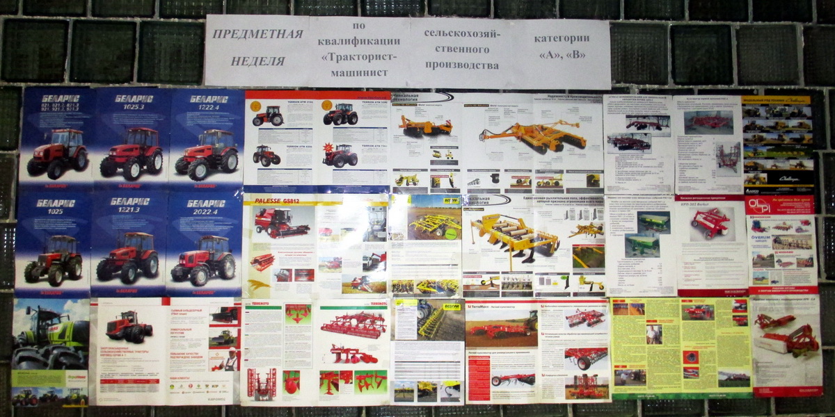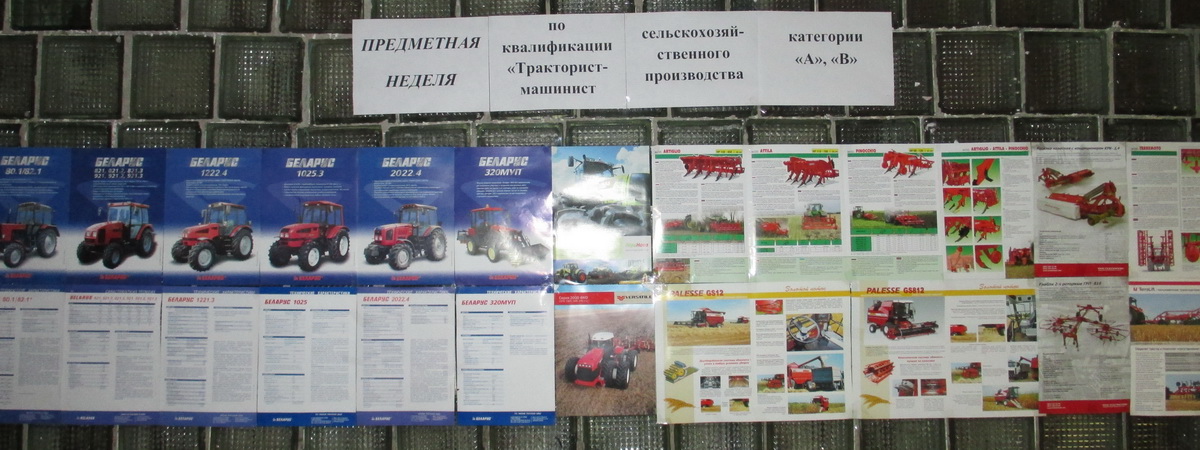 С 25 по 29 ноября в колледже проходила предметная неделя по квалификации "Тракторист-машинист с.х. производства категории "А", "В"", в рамках которой проходили следующие мероприятия: теоретический конкурс (решение билетов по ПДД и устройству тракторов), практический конкурс (выполнение заданных элементов на трактородроме), игра "Брейн-ринг". По итогам всех испытаний победителями стали: 1 место - Каменецкий Александр Геннадьевич (учебная группа №220), 2 место - Норко Олег Романович (учебная группа №218), 3 место - Струкачёв Данила Игоревич (учебная группа №220).