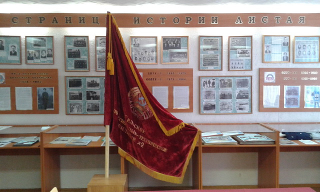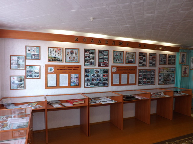 Экспозиция музейной комнаты состоит из 6 разделов. Каждый из них содержит материалы о руководстве учебного заведения на определенном этапе деятельности, педагогах, учебно-производственном процессе, трудовых буднях, досуге.
