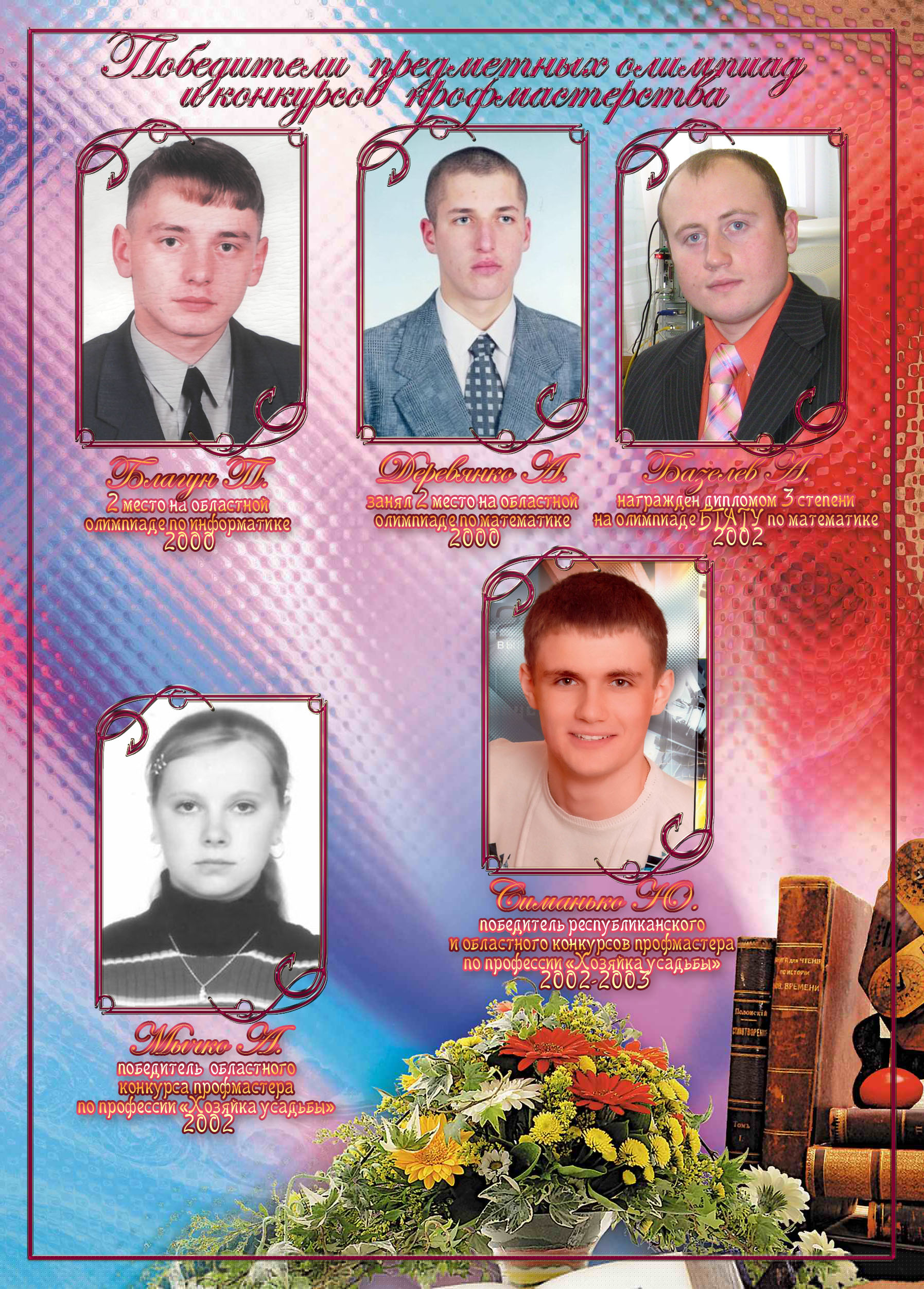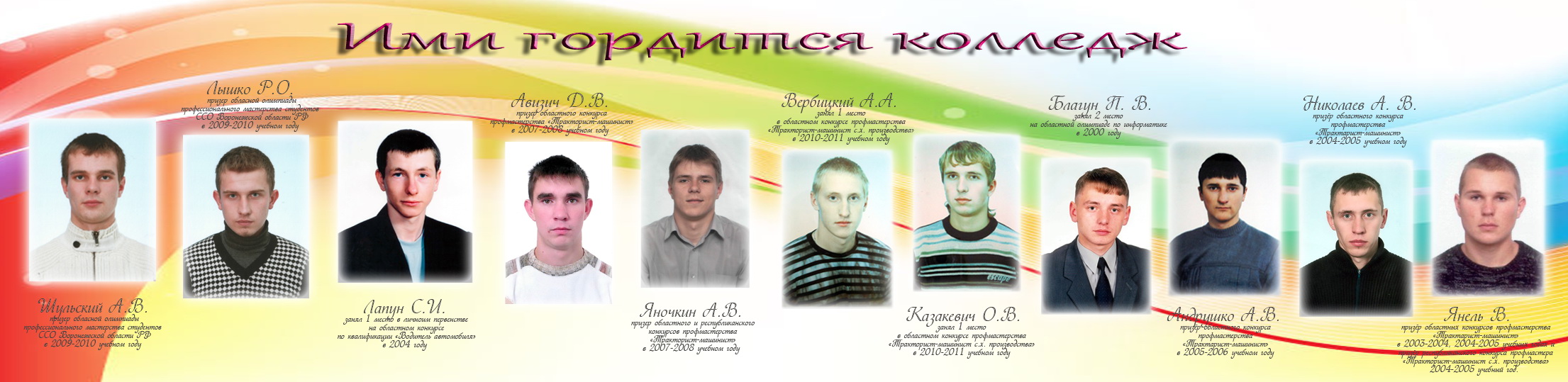 - «Ими гордится колледж» рассказывают о победителях областных и республиканских предметных олимпиад, конкурсов профессионального мастерства;