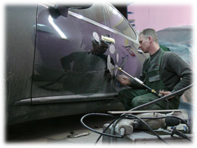 Ремонт поврежденных деталей кузова с заменой или путем применения ремонтных вставок из подготовленных деталей кузова или листового металла с приданием ему формы восстанавливаемой детали.